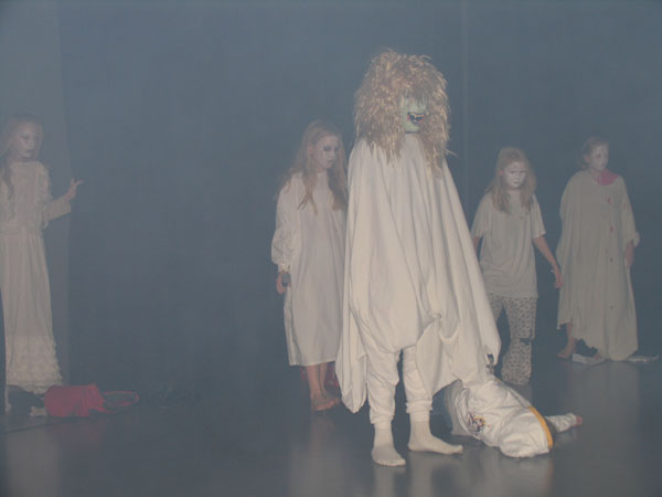 Föstudaginn 26. september sá 6. L.K. um að skemmta nemendum eldri deildar á sal skólans. Þau voru greinilega undir áhrifum af alþjóðlegu barnabókahátíðinni Draugar út í mýri sem stóð yfir vikuna 19. -23. september því þau kusu að setja á svið draugaleikrit. Stífar æfingarnar í vikunni skiluðu greinilega árangri því krakkarnir stóðu sig eins og atvinnuleikarar.