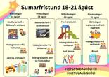 Sumarfrístund fyrir 1. bekkingaSumarfrístund fyrir 1. bekkinga verður frá 14. til 21. ágúst í Regnboganum. Opið er frá kl. 8.30 til 16.00. Boðið er upp á hádegisverð og síðdegishressingu en börnin koma með hollt og gott morgunnesti. Börnin þurfa að vera klædd til útiveru.