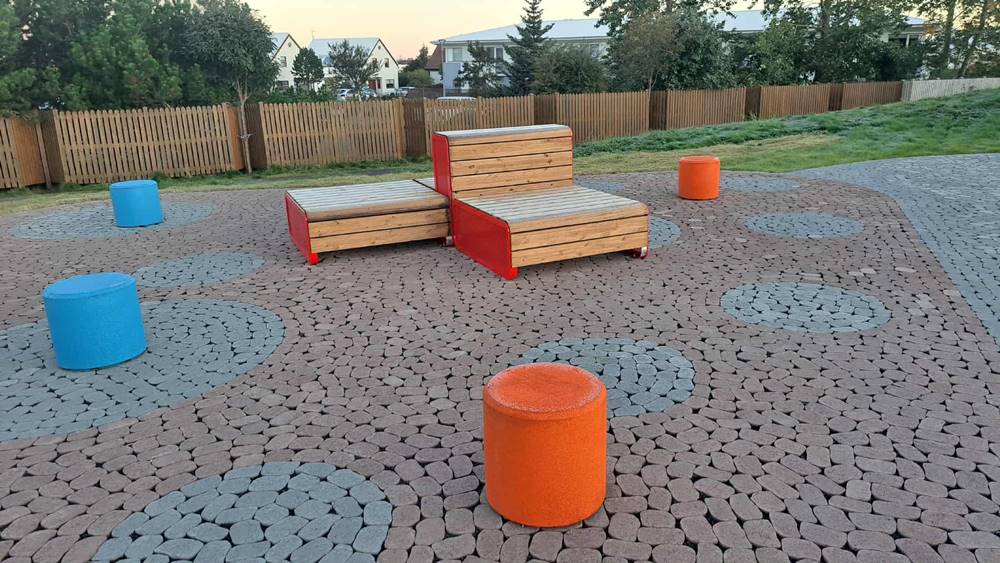 Endurbótum á fyrsta áfanga skólalóðarinnar er lokið og var svæðið opnað í dag 18. september við mikla gleði nemenda. Undirlag hefur verið endurnýjað, lagðir stígar og sett litríkt "grasteppi". Ný leiktæki, kastali, jafnvægistæki og rólur svo eitthvað sé nefnt auk bekkja og hnalla til að sitja á og spjalla. Eitt leiktæki sem var nýlegt er áfram á svæðinu enda er það í góðu standi. Það er klifurgrind sem foreldrafélag skólans gaf fyrir nokkrum árum.