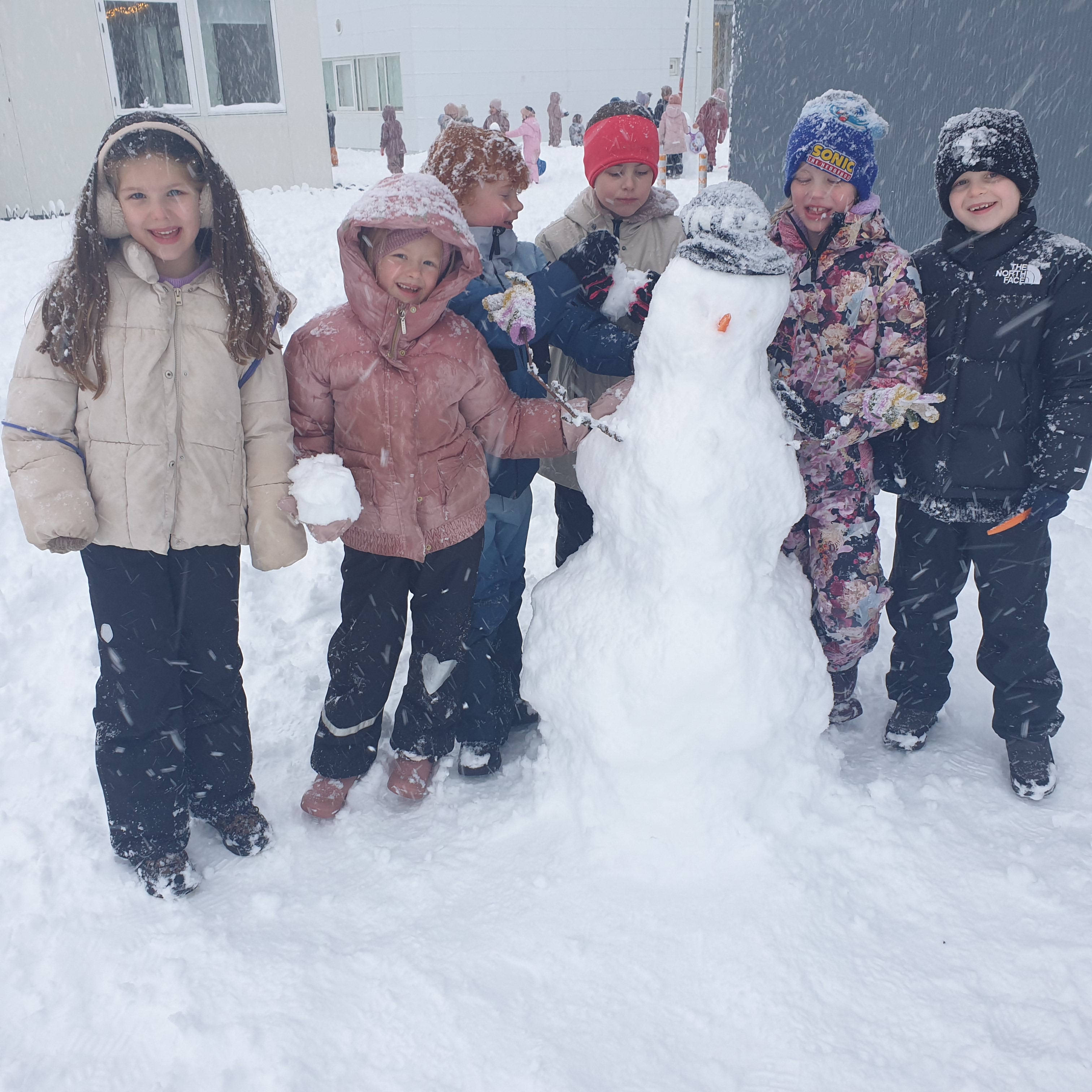 Mynd með fréttinni er tekin í fyrsta snjónum í síðustu viku.